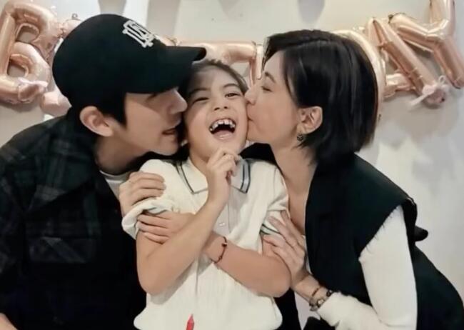 今年3月,贾静雯发文庆祝女儿8岁生日,并晒出一家人庆生视频。